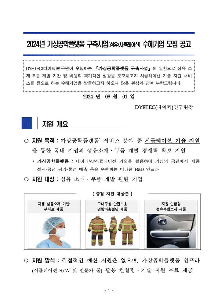 2024³â °¡»ó°øÇÐÇ÷§Æû ±¸Ãà»ç¾÷(¼¶À¯/½Ã¹Ä·¹À̼Ç) ¼öÇý±â¾÷ ¸ðÁý °ø°í µî·ÏÀÏ 2024.08.07 ÀÛ¼ºÀÚ ´ÙÀÌÅØ¿¬±¸¿ø Á¶È¸¼ö 335 ¸ñ·Ïº¸±â