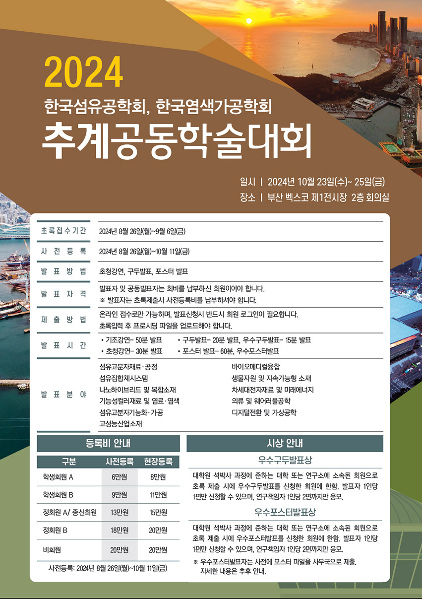[DYETEC] 2024³â Çѱ¹¼¶À¯°øÇÐȸ&Çѱ¹¿°»ö°¡°øÇÐȸ Ãß°è°øµ¿Çмú´ëȸ µî·ÏÀÏ 2024.08.12 ÀÛ¼ºÀÚ ´ÙÀÌÅØ¿¬±¸¿ø Á¶È¸¼ö 370 ¸ñ·Ïº¸±â
